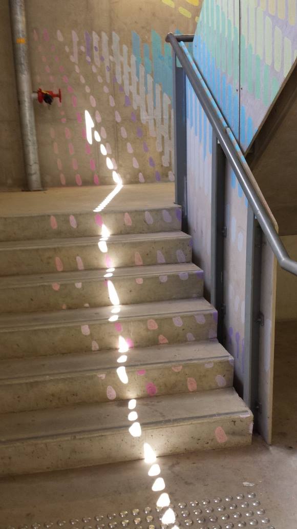 Here comes the sun, 2013. Collaboration with Steve Wilson. Tracking the sunlight in the Dorrit Black Building at the University of South Australia.