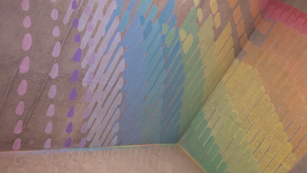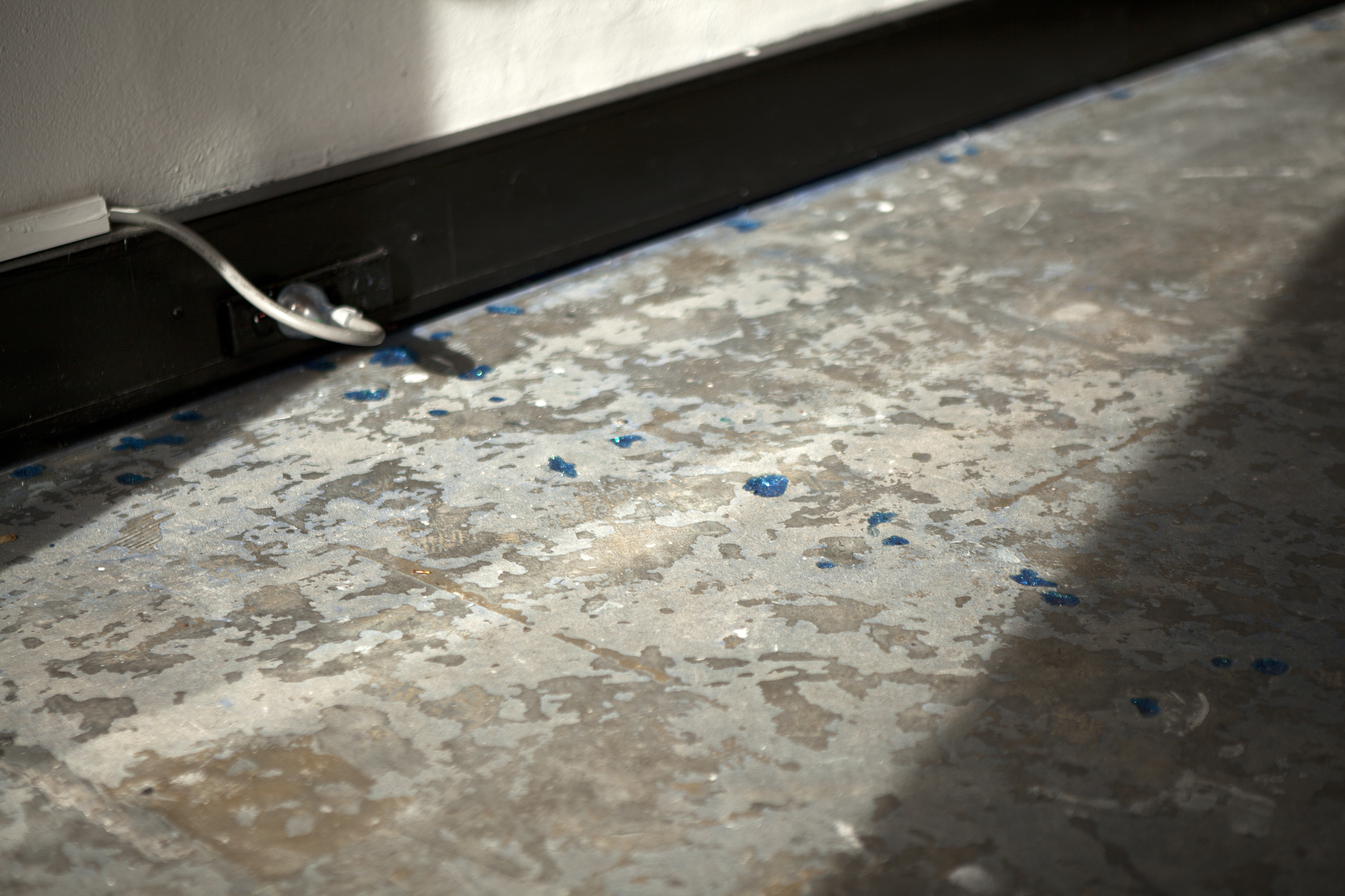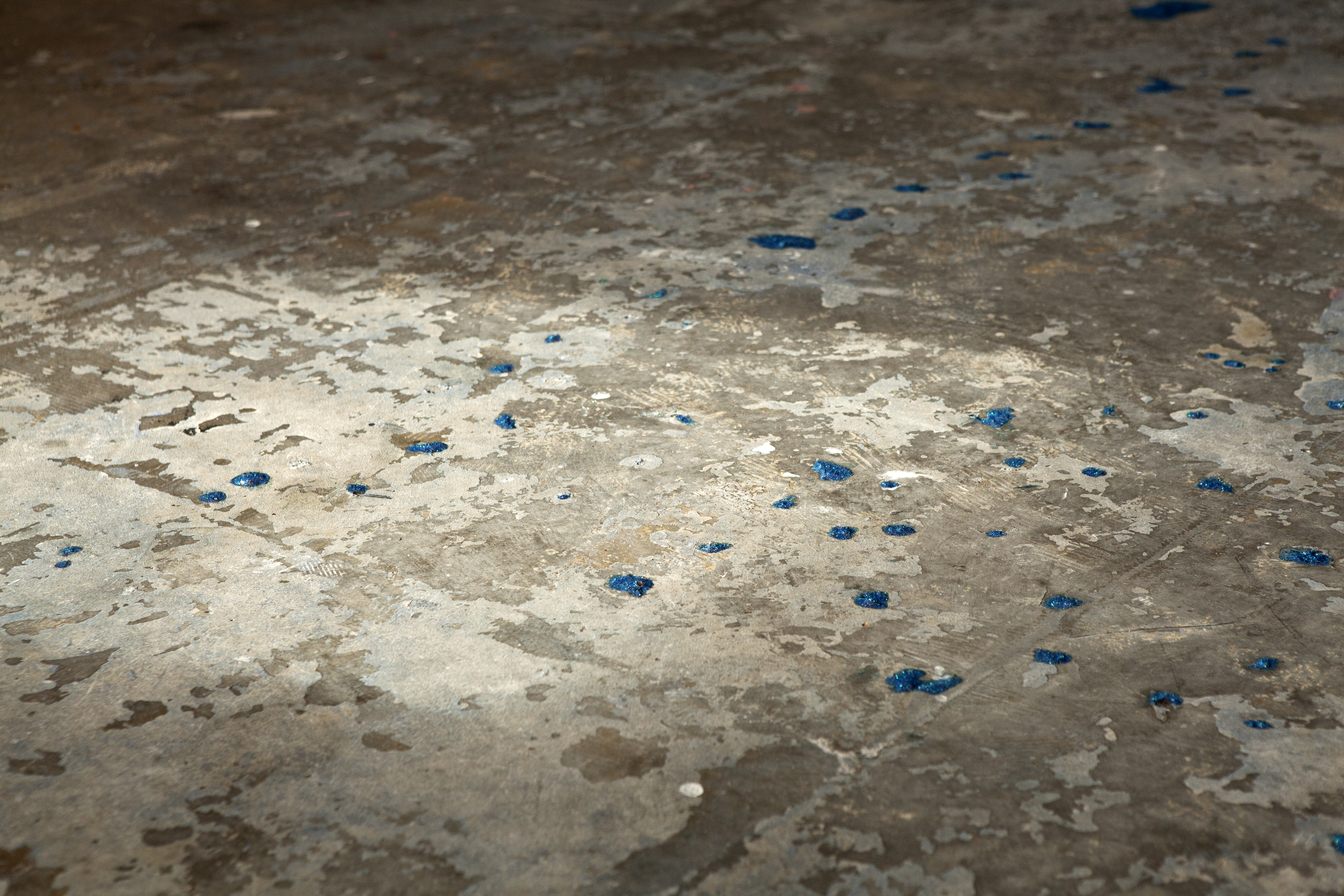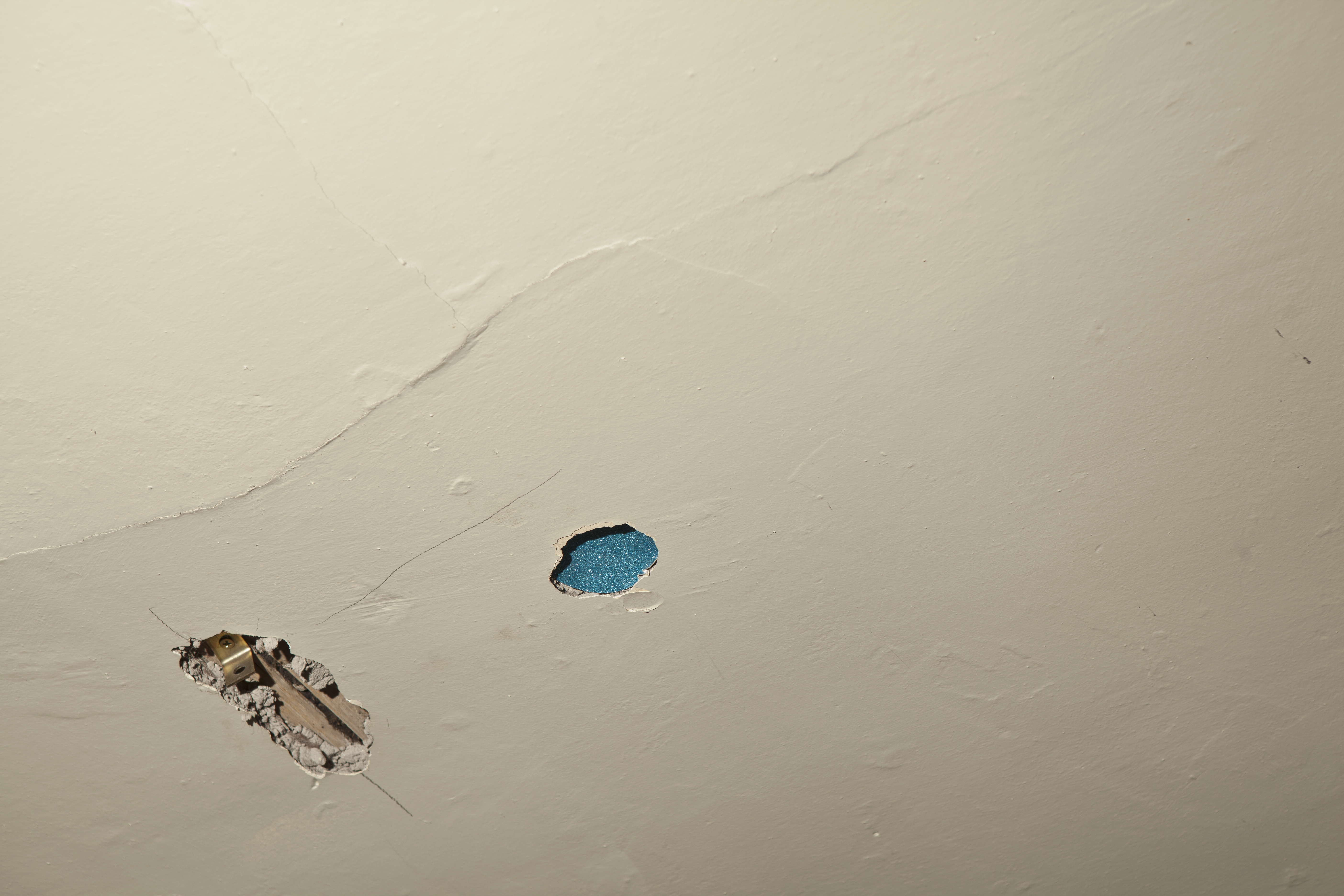 With bright and shiny stars in my eyes, 2013, floor and ceiling craters filled with glitter glue and cardboard. Constance ARI, Hobart.