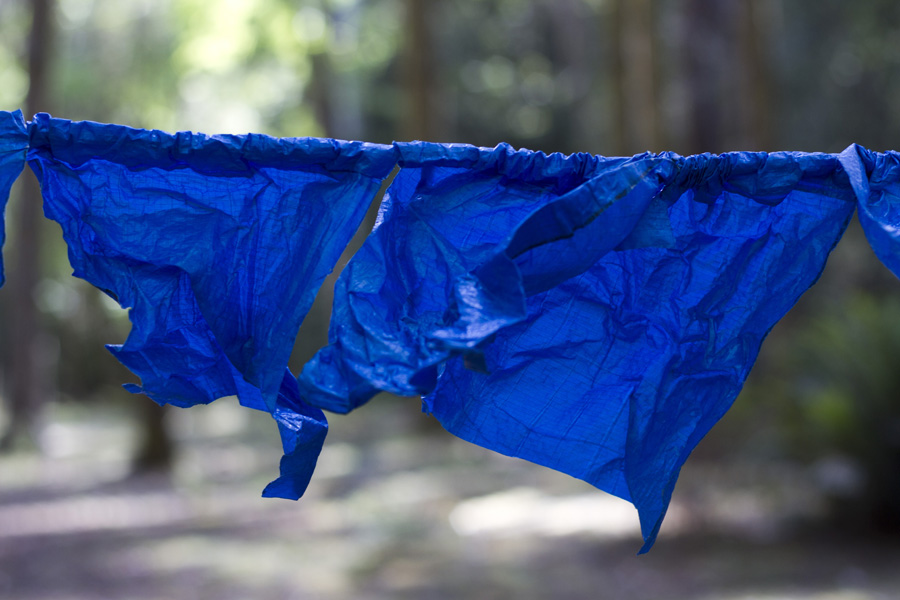 An attempt to recreate moments of significance from time spent living in Mongolia, blue squares of tarp resembling Tibetan prayer flags were temporarily placed in the Australian landscape creating ephemeral and abstract sculptures as offerings to the sky and space.