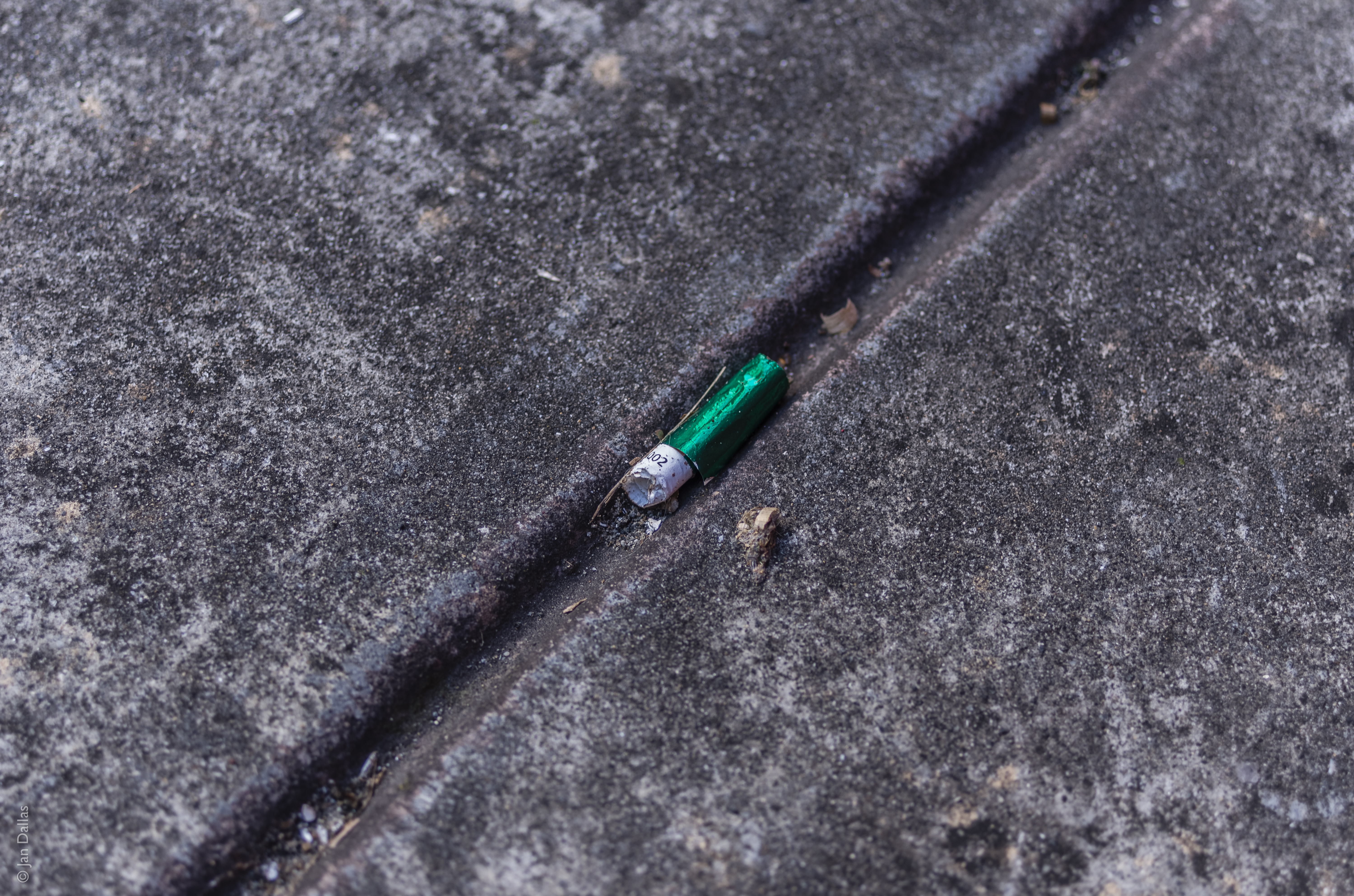 Filtering the universe on a passage to the lungs, 2014, cigarette butts wrapped in coloured paper, Contemporary Art Tasmania courtyard